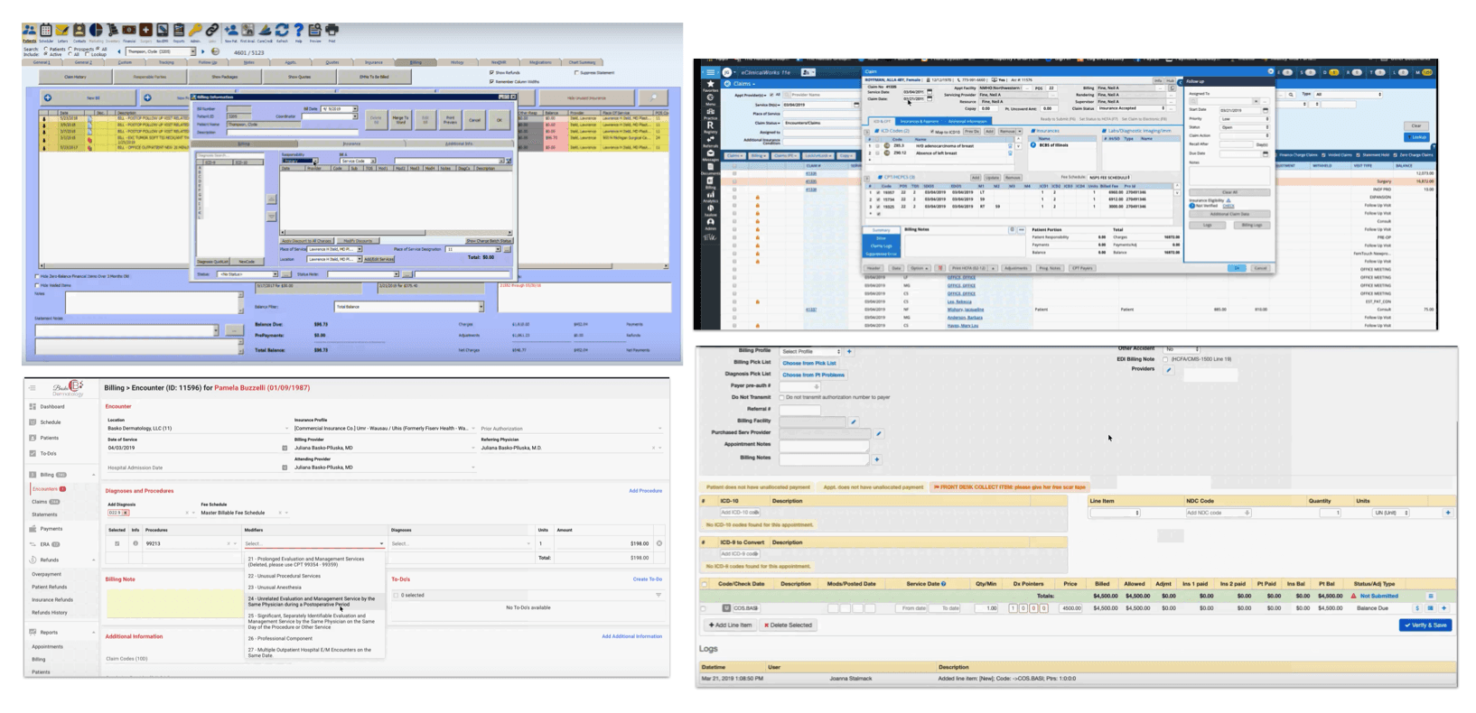 Analyze how existing medical software supports billing workflows