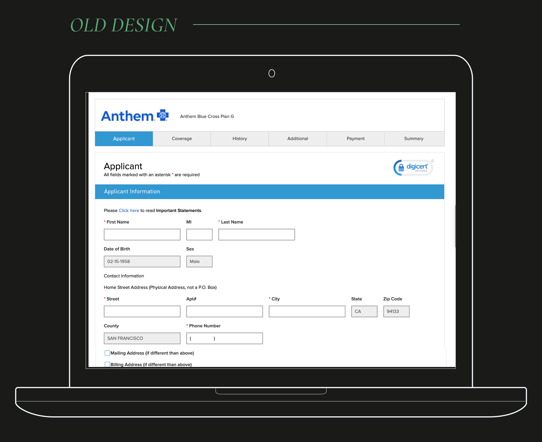 "Users were navigating a form built for the carrier's back-office, not for the person trying to enroll in coverage."