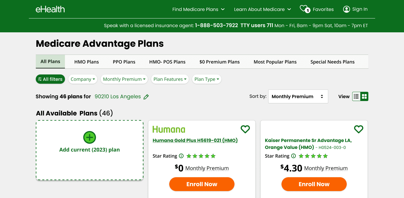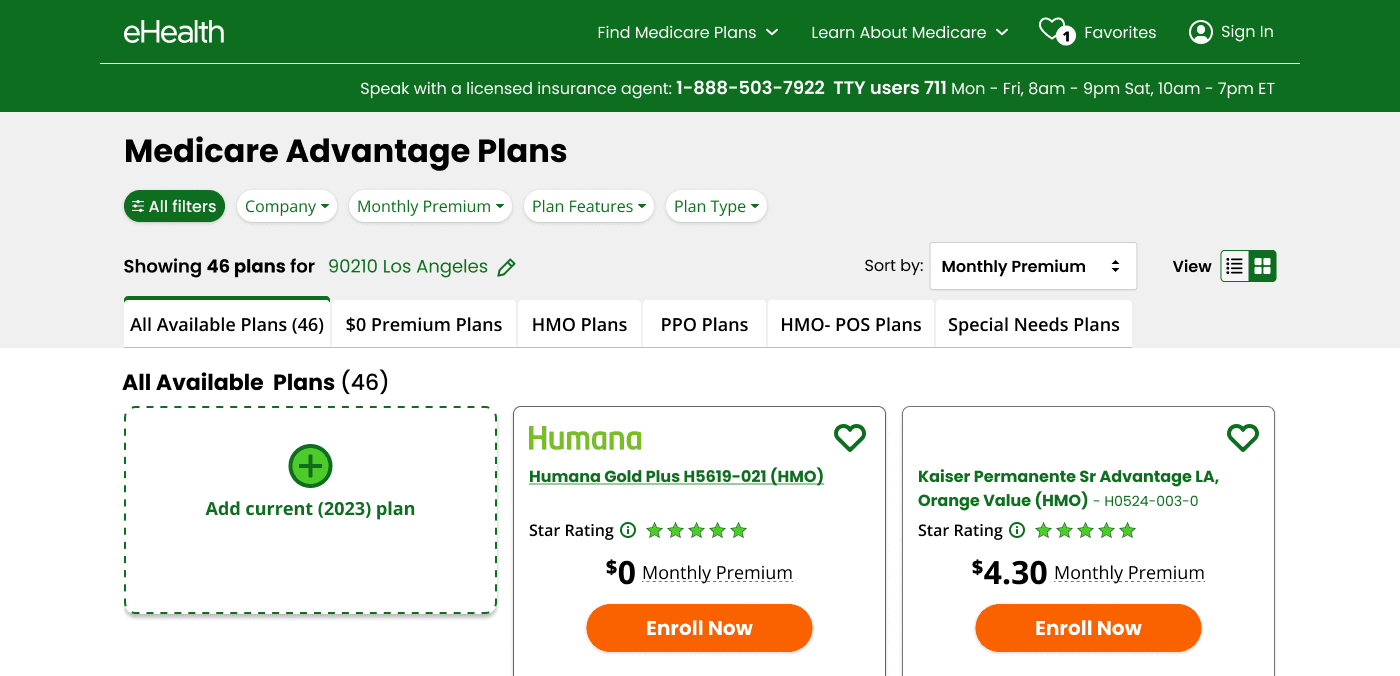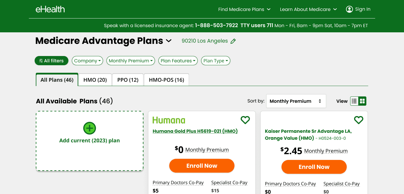 Tabs positioned below filters, showing more categories (HMO, PPO, HMO-POS, $0 Premium Plans, Most Popular, Special Needs). Tested whether more category options helped users find their entry point faster — or overwhelmed them further.